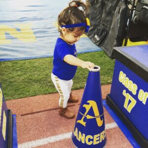 “A future Lancer cheerleader just wishing it was already her time to stand and cheer from her own Cheer-Mo cheer box.”