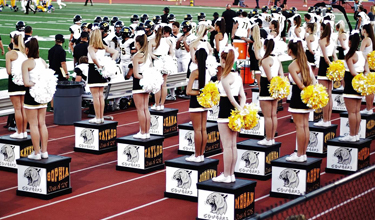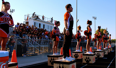 “We ABSOLUTELY loved the Cheer-Mo boxes this year! We obtained individual sponsors for each box to afford to purchase them this year. We used them at all home games for both varsity and JV (same set of boxes) and because they are collapsible…we were able to fold them up, throw the straps on, and walk them up the stairs to the press box after each game (the ones I cheered with over 25 years ago in California were gigantic, and we had to have 3 trucks to move them every game, it was awful.) In addition, it was the first time in years that people in the stands could see our cheerleaders! They used to look like “bobble heads” standing behind the fence on the track…and seemingly disappeared. The community absolutely embraced the new look, we were told frequently how professional our program looked, and truly, they are like “mini stages” as they should be. Also, your height is perfect on these…as they are within high school federal and state guidelines! They are so beautiful, originally we had planned on completely painting all the sides, but the wood is so pretty that I stenciled and painted the paw prints myself, and we had a parent cut the vinyl sponsors names for the one side. Then just clear coat varnished them. The very top of each box we did a paw print and numbered each box, so each cheerleader knew which box they were responsible for bringing down, standing on, and taking back down. Also when set up, they are perfect for storing securely any items not needed to be left about! (poms, warm up jackets…bags, etc.) We were thrilled with the quality and price. They are easy to put together, and set up, very sturdy. As a coach I showed the kids, I could cheer on them in addition, no problem! Thank you again! We will use them for YEARS to come!